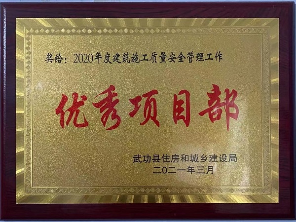 4月25日,武功县住房和城乡建设局表彰了2020年度建筑施工、房地产开发和物业管理工作先进集体和先进个人,四分公司陕西金沙河项目荣获“2020年度建筑施工质量安全管理工作优秀项目部”称号。
